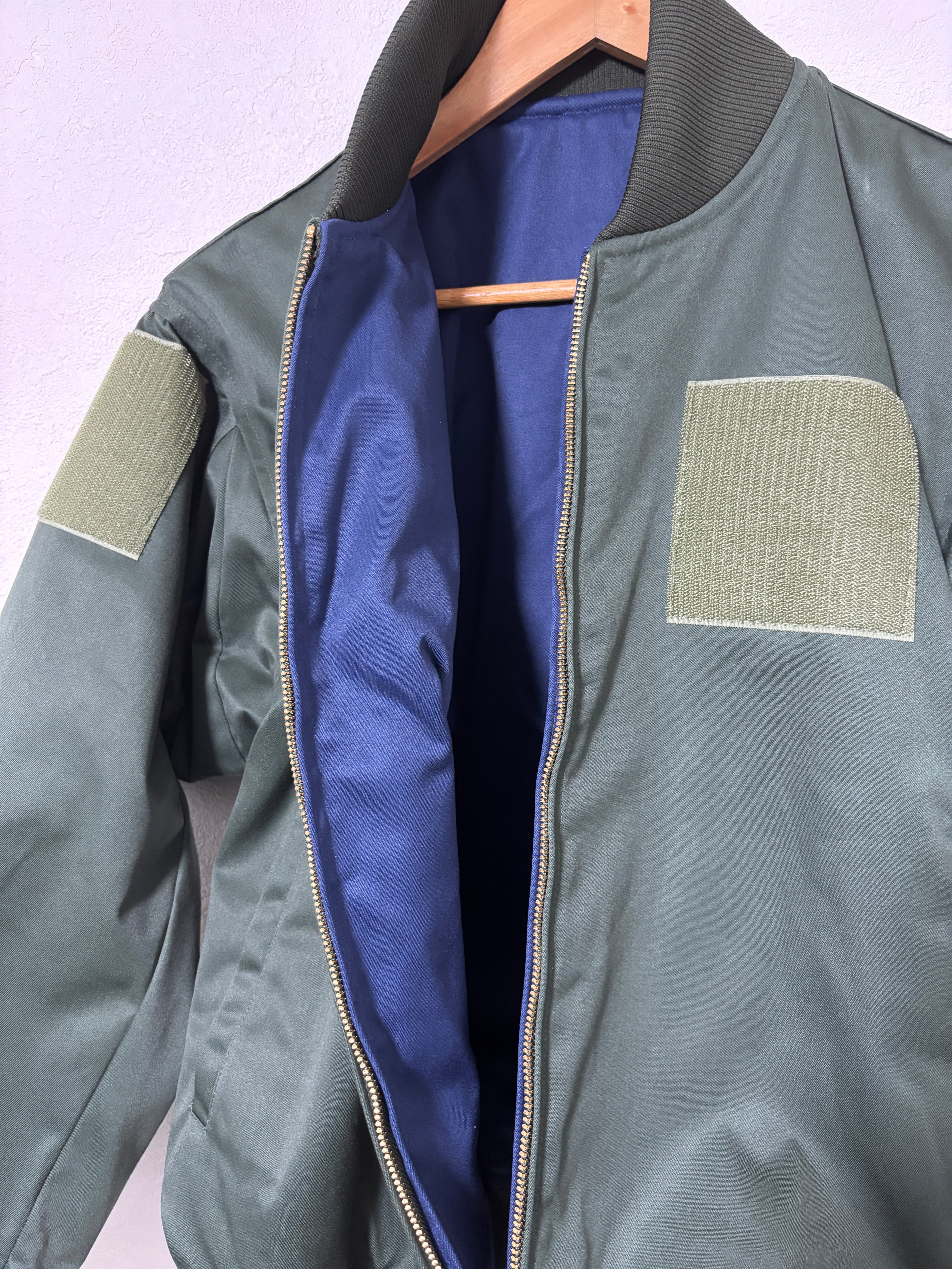 リバーシブルで裏面は紺色。紺色面にはベルクロはついていません。